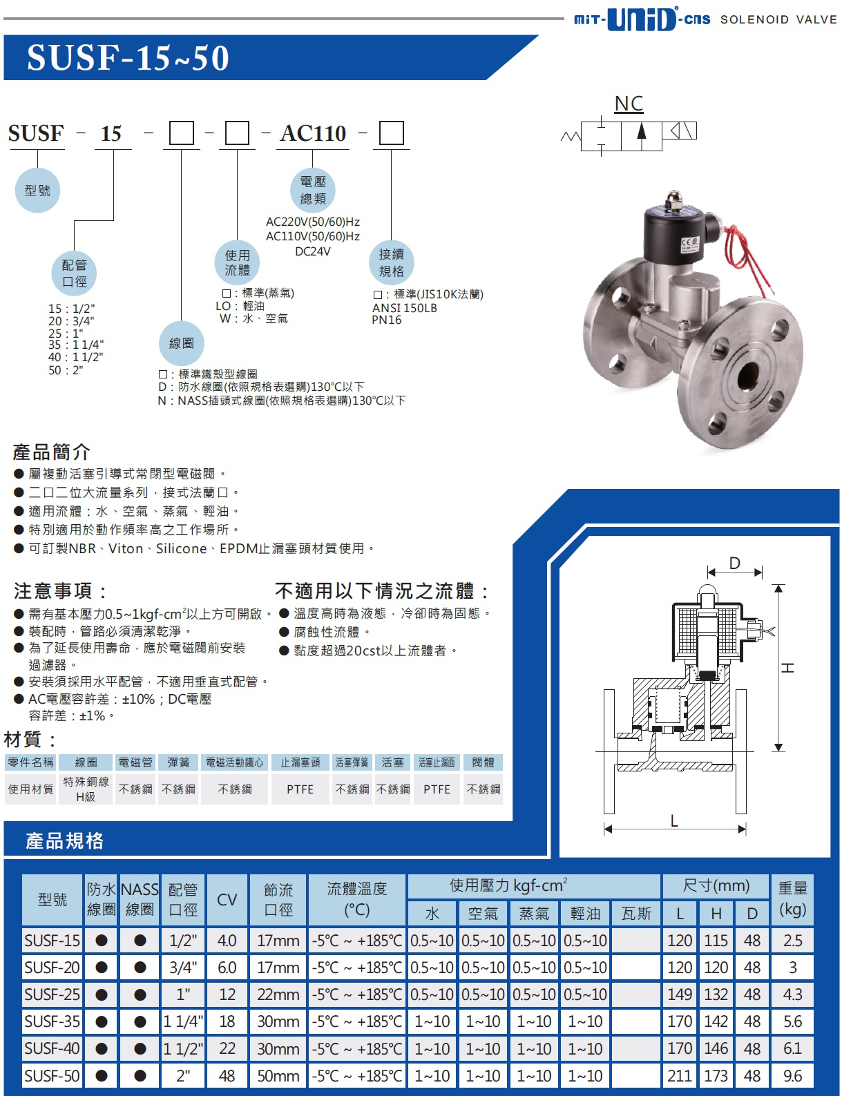 SUS-20F不锈钢316法兰蒸汽电磁阀,台湾UNI-D,SUSF-20