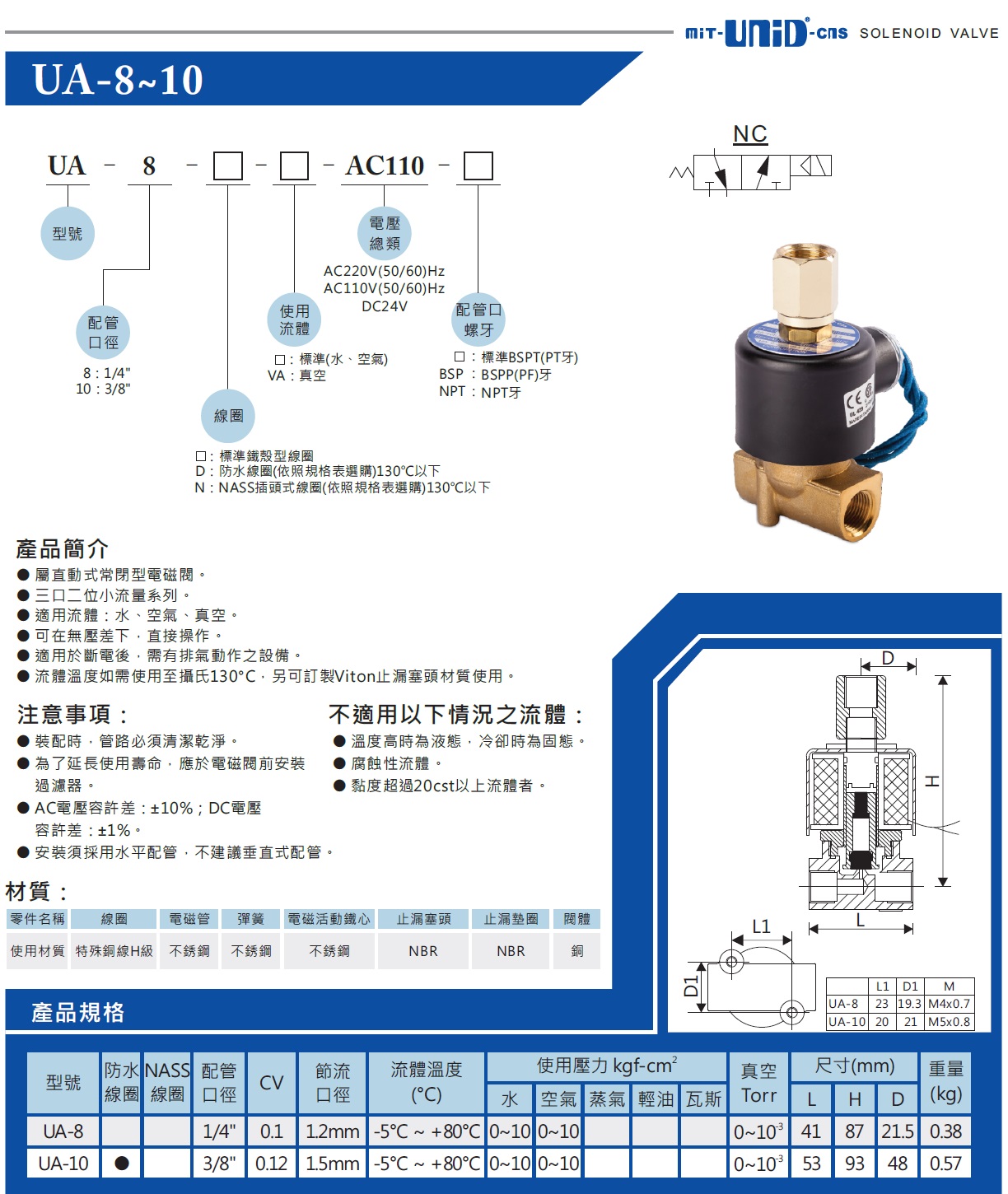 UA-8三通电磁阀,MIT-UNID-CNS电磁阀,UA-8