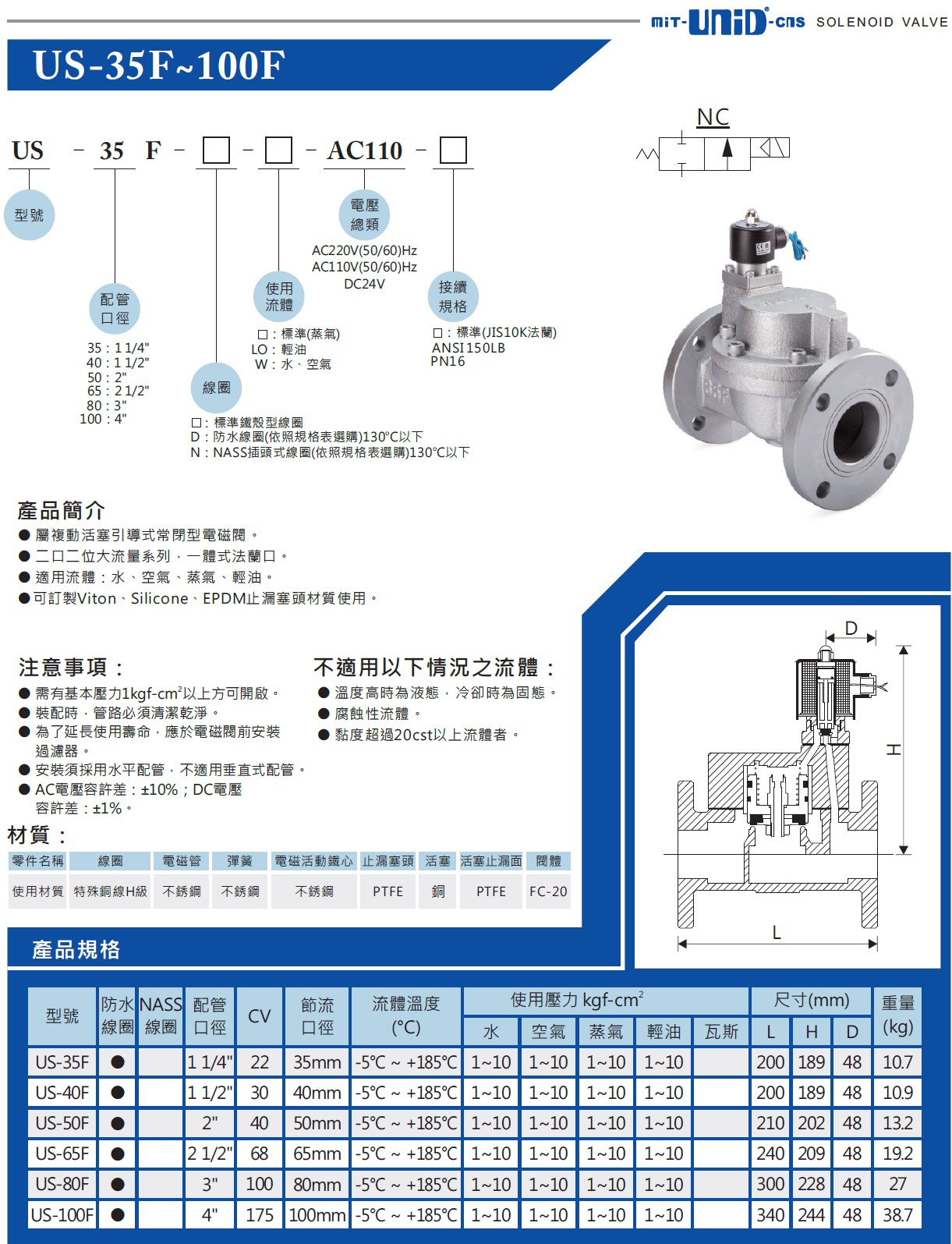 US-80F铸铁蒸汽电磁阀,UNI-D蒸汽阀,US-80F