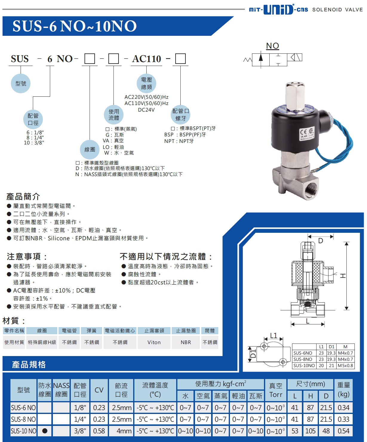 SUS-6NO蒸汽常开电磁阀,台湾DI-HEN电磁阀,SUS-6-NO
