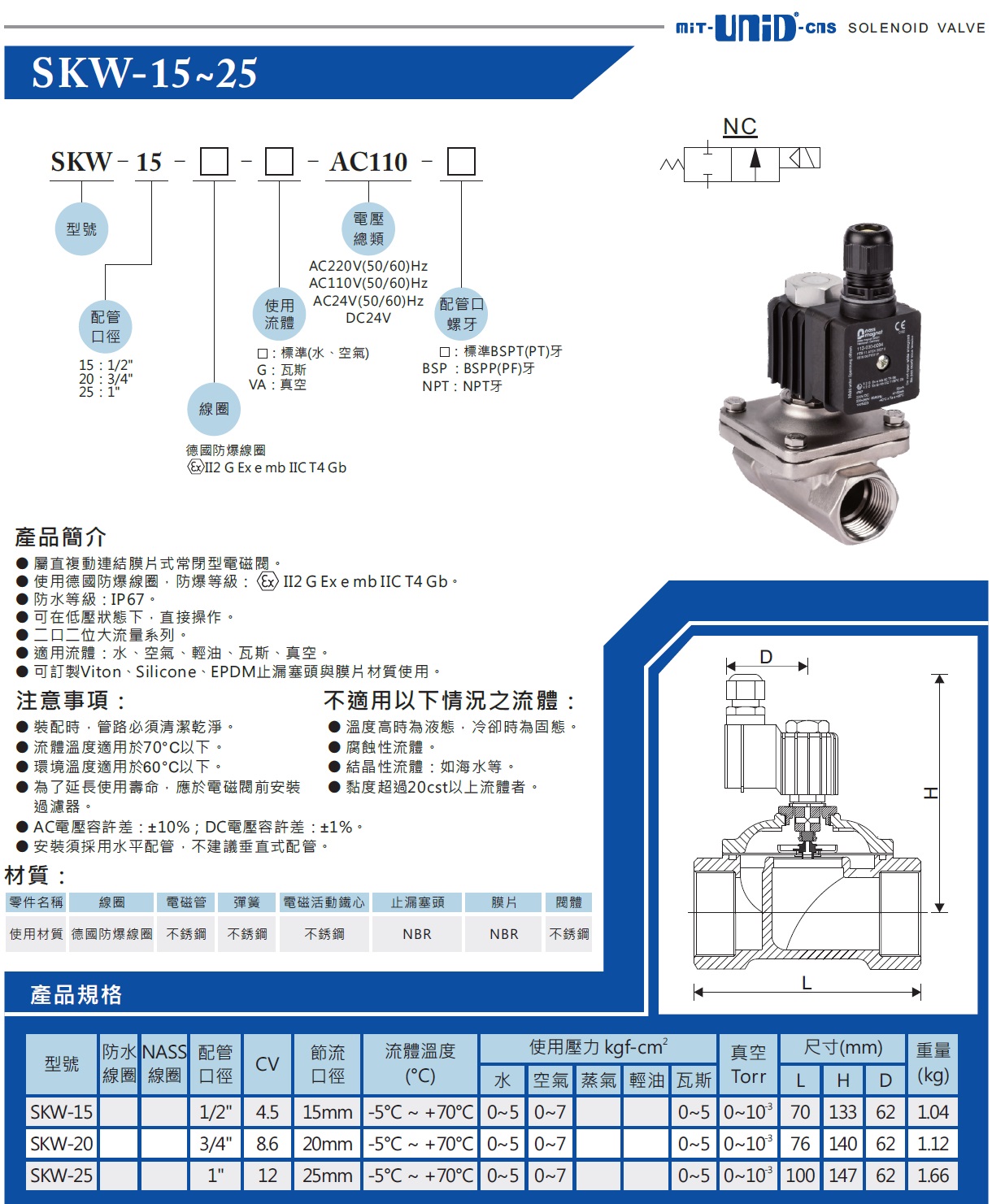 SKW-25防爆NASS线圈电磁阀,台湾鼎机UNID防爆电磁阀,SKW-25