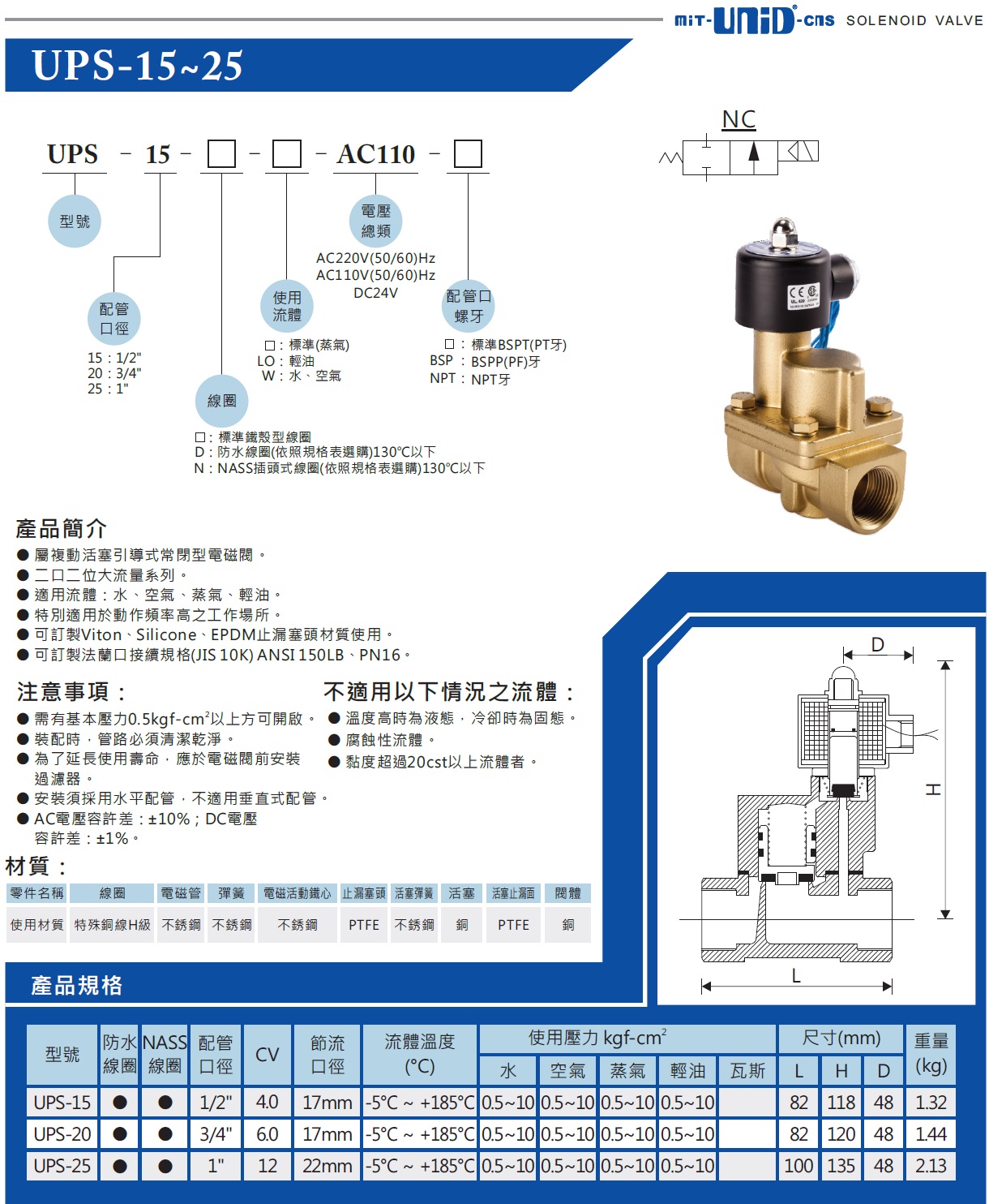 UPS-20电磁阀,台湾鼎机蒸汽电磁阀,UPS-20