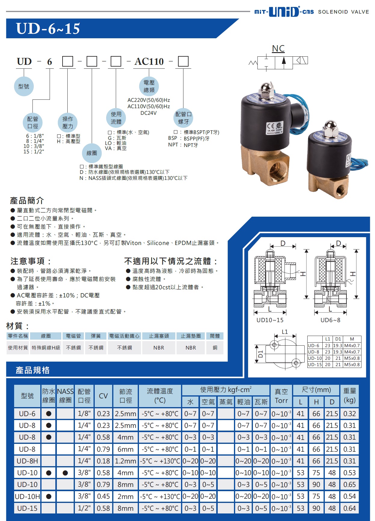 UD-10电磁阀,台湾鼎机UNID电磁阀,UD-10