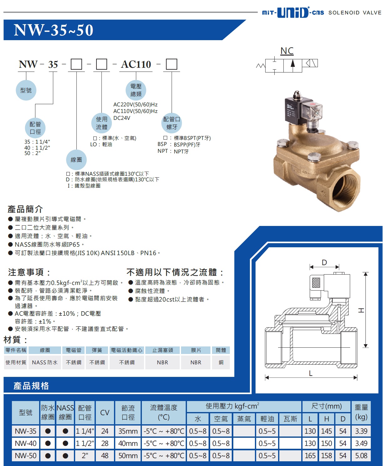 NW-50电磁阀,台湾鼎机UNID电磁阀,NW-50