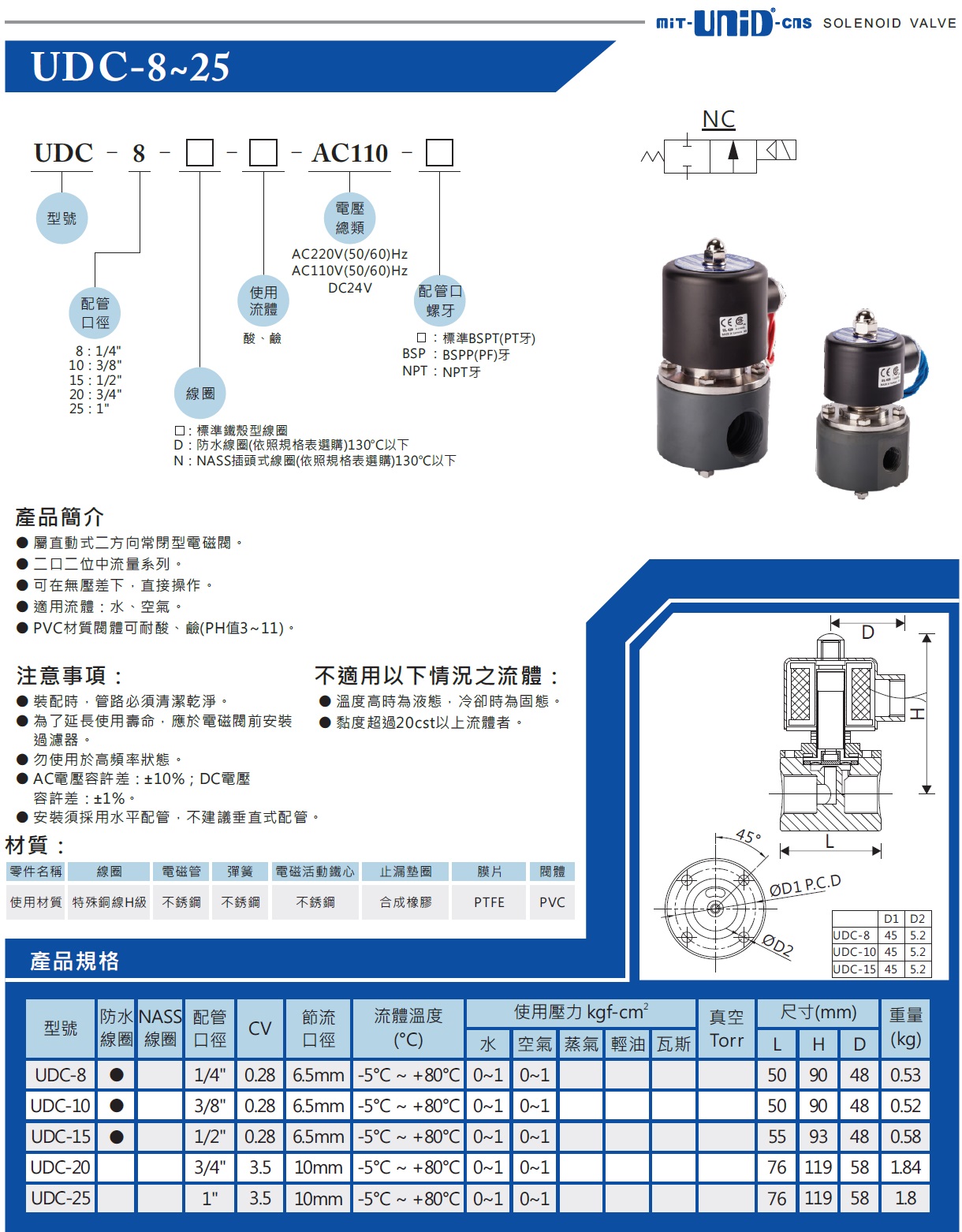 UDC-8电磁阀,耐强酸强碱腐蚀PVC电磁阀,UDC-8