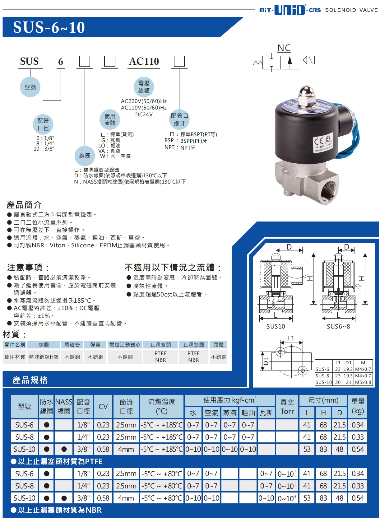 SUS-8蒸汽电磁阀,台湾鼎机UNID电磁阀,SUS-8