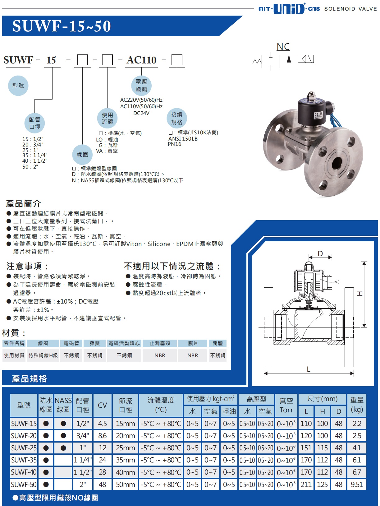 SUW-35F法兰316L电磁阀,MIT-UNID-CNS电磁阀,SUWF-35
