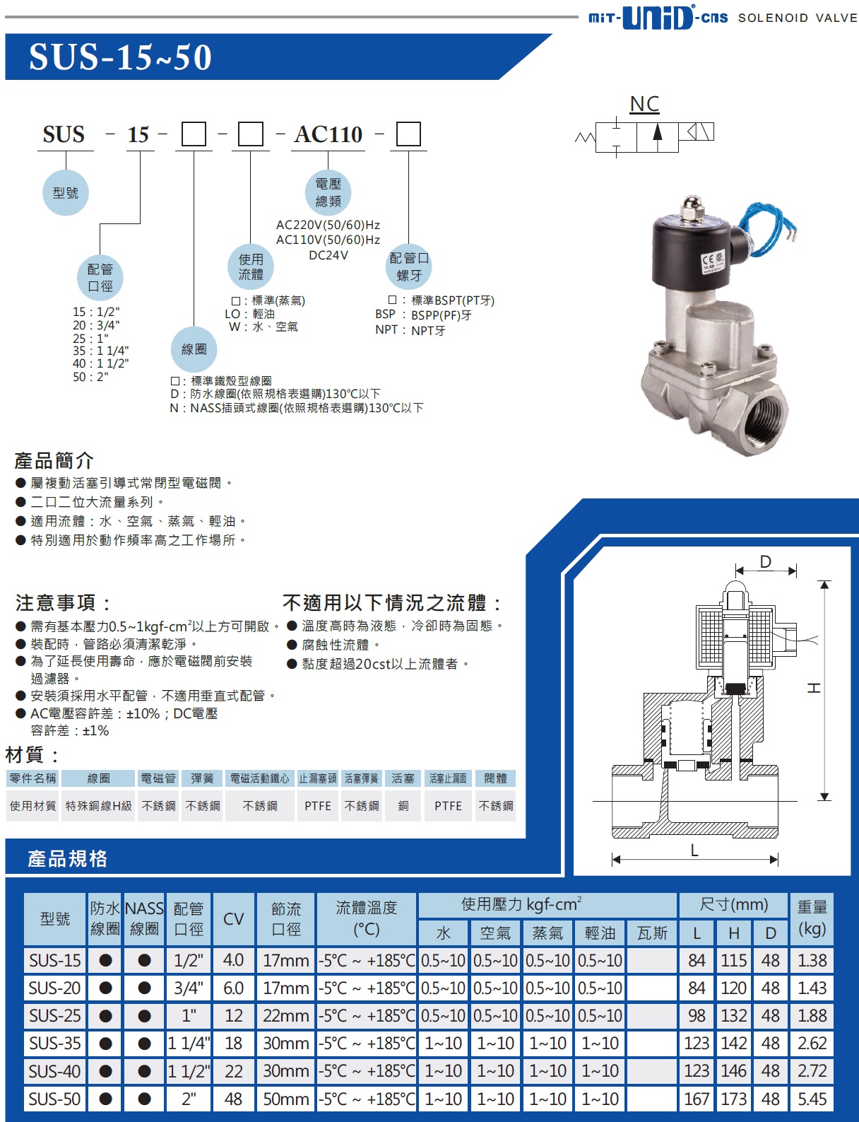 SUS-50不锈钢316L蒸汽电磁阀,台湾鼎机电磁阀,SUS-50